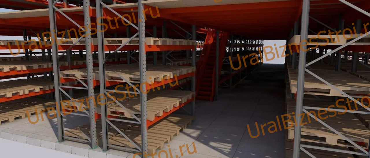 Быстровозводимый склад (мезонин) на паллетных стеллажах 20000*27000*10000 2 этажа