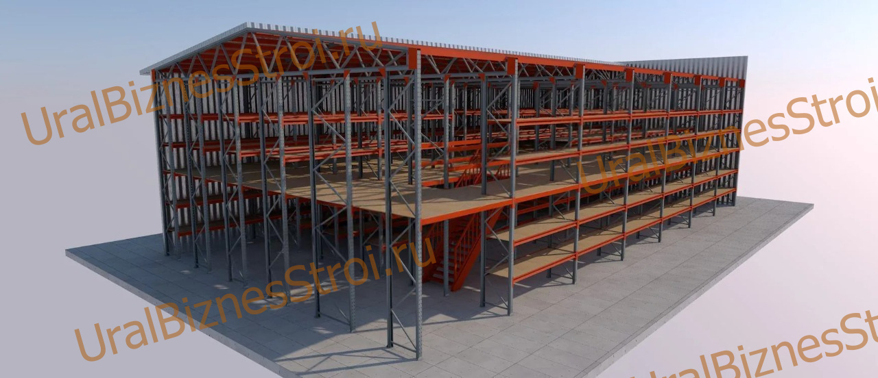Самонесущий склад (Мезонин) на паллетных стеллажах 12000*20000*8000мм 2 этажа