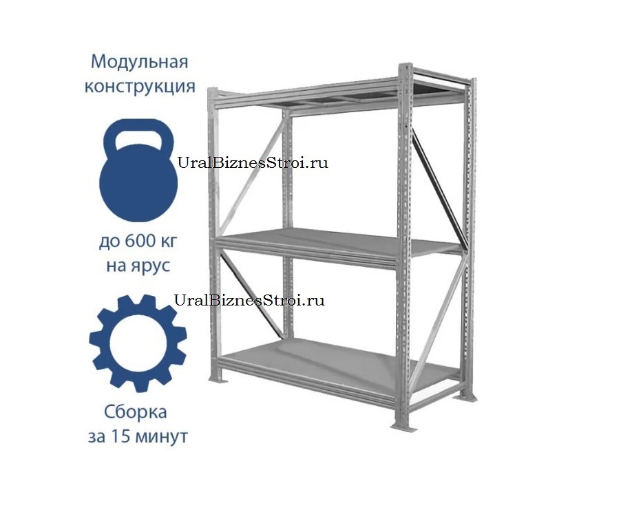 Грузовой стеллаж 2040*1000*2000 3 яруса навесных с настилом (оцинк.)