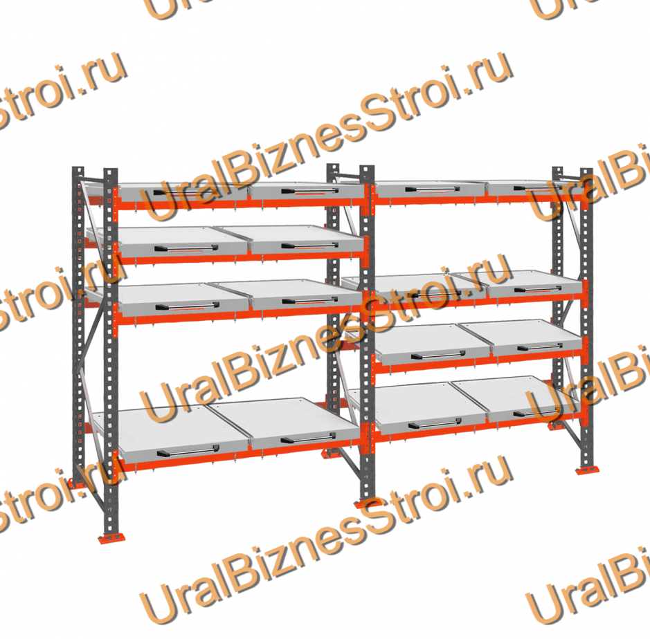 Стеллаж с выкатными платформами 2500*3600*1050 4 яруса 16 платформ