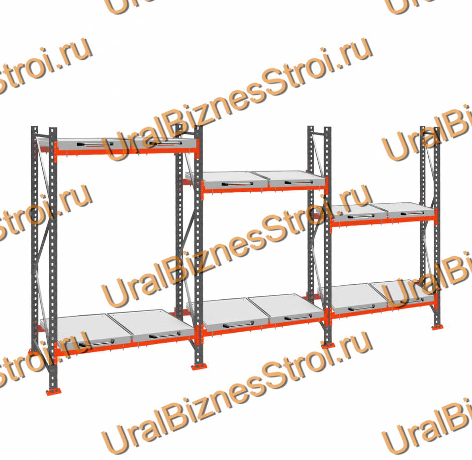 Стеллаж имеет возможность присоединения необходимого количества дополнительных секций к основному стеллажу (При установке стеллажей в линию нагрузочные характеристики сохраняются).