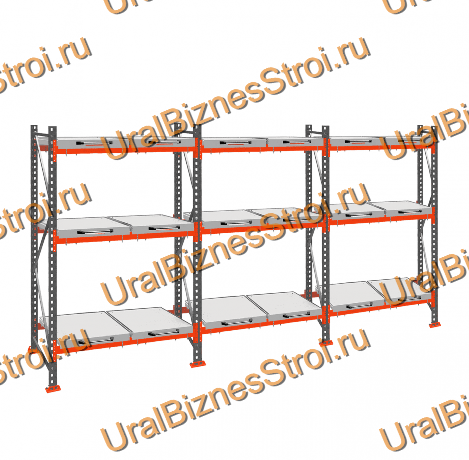 Стеллаж имеет возможность присоединения необходимого количества дополнительных секций к основному стеллажу (При установке стеллажей в линию нагрузочные характеристики сохраняются).