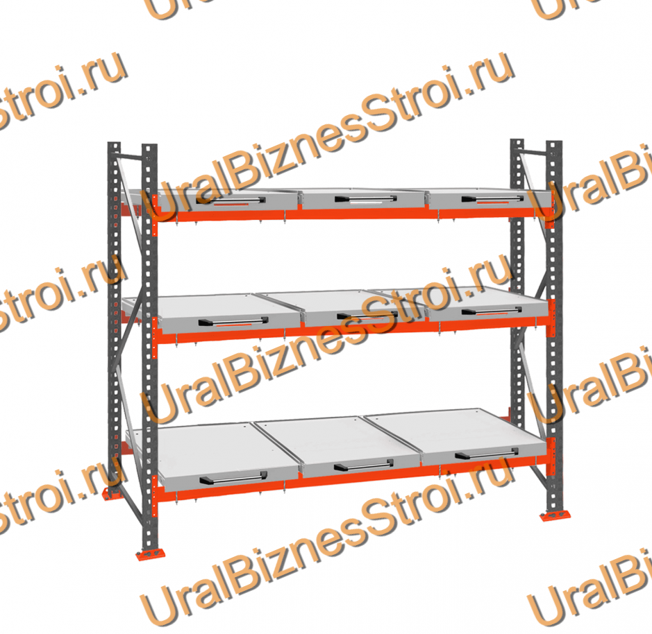 Стеллаж с выкатными платформами 3000*2700*1050 3 яруса 9 платформ