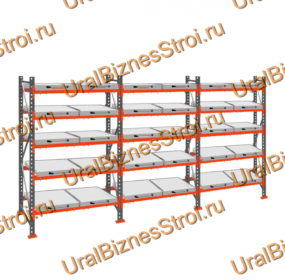 Стеллаж с выкатными платформами 3000*5400*1050 5 яруса 30 платформ
