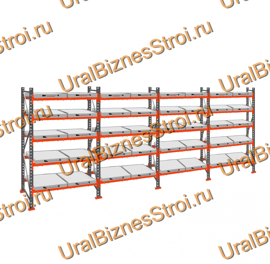 Стеллаж с выкатными платформами 3000*7200*1050 5 ярусов 40 платформ