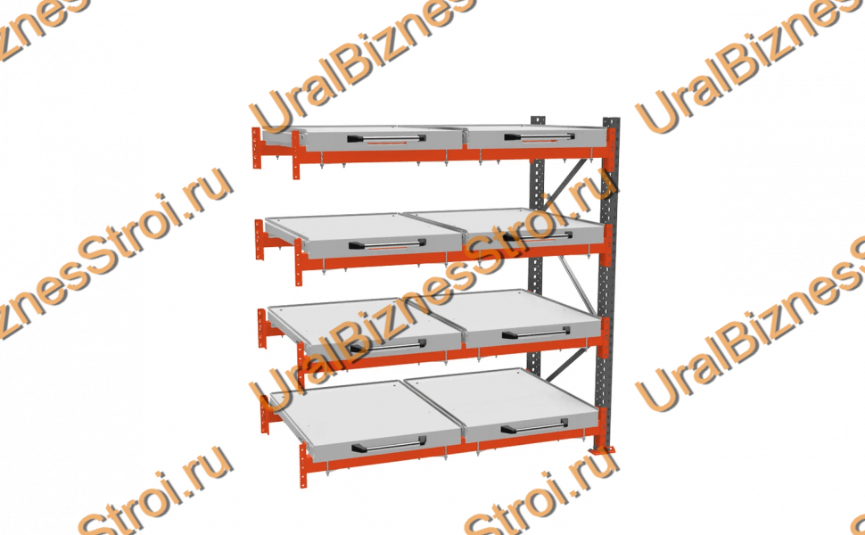 Стеллаж с выкатными платформами дополнительная секция 2500*1800*1050 4 яруса 8 платформ