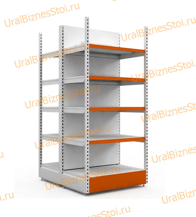 Торговый островной стеллаж (Усиленный с передней стойкой) 2350*400*600 5 полок