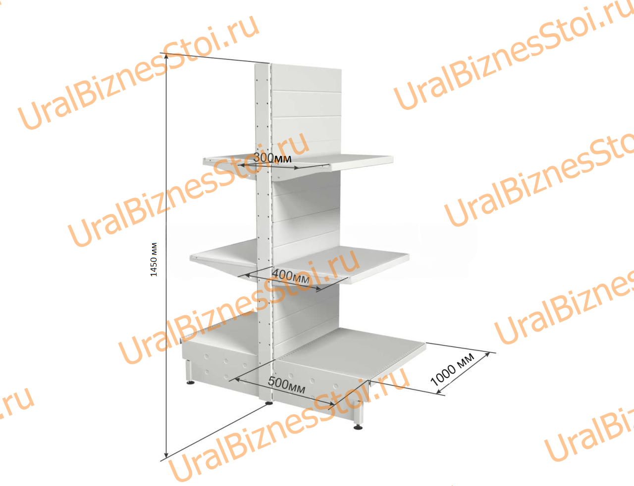 Торговый островной стеллаж 1450*500*1000 3 полки