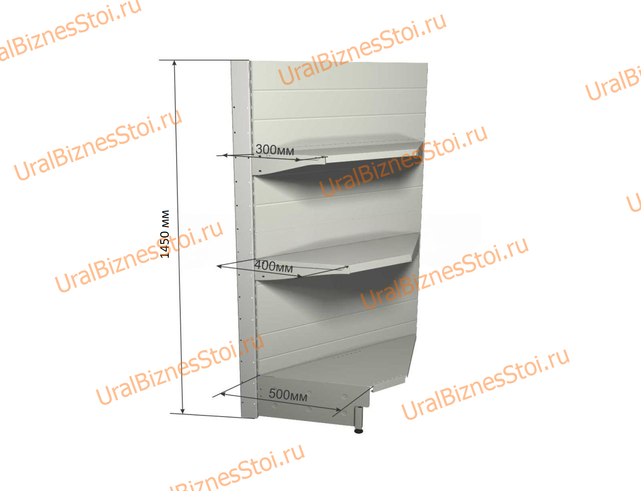 Торговый угловой стеллаж 1450*500*900 3 полки